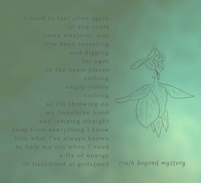 Are bad decisions for good reasons truly wrong? I’ve been wondering and can’t find the answers in all the generic ‘right’ ways or places. What if my desires and responsibilities contradict each other, what if my values and principles clash? Without trying to sound too much like a relativist, morality is fluid. Even if the mass stays the same, the (individual) shape will constantly move, morph, change, grow, evolve. Sometimes even back into a previously familiar form. Although backwards growth isn’t possible, this direction of movement can sometimes prove useful. If only to remember, recollect and cherish dearly what once was.
